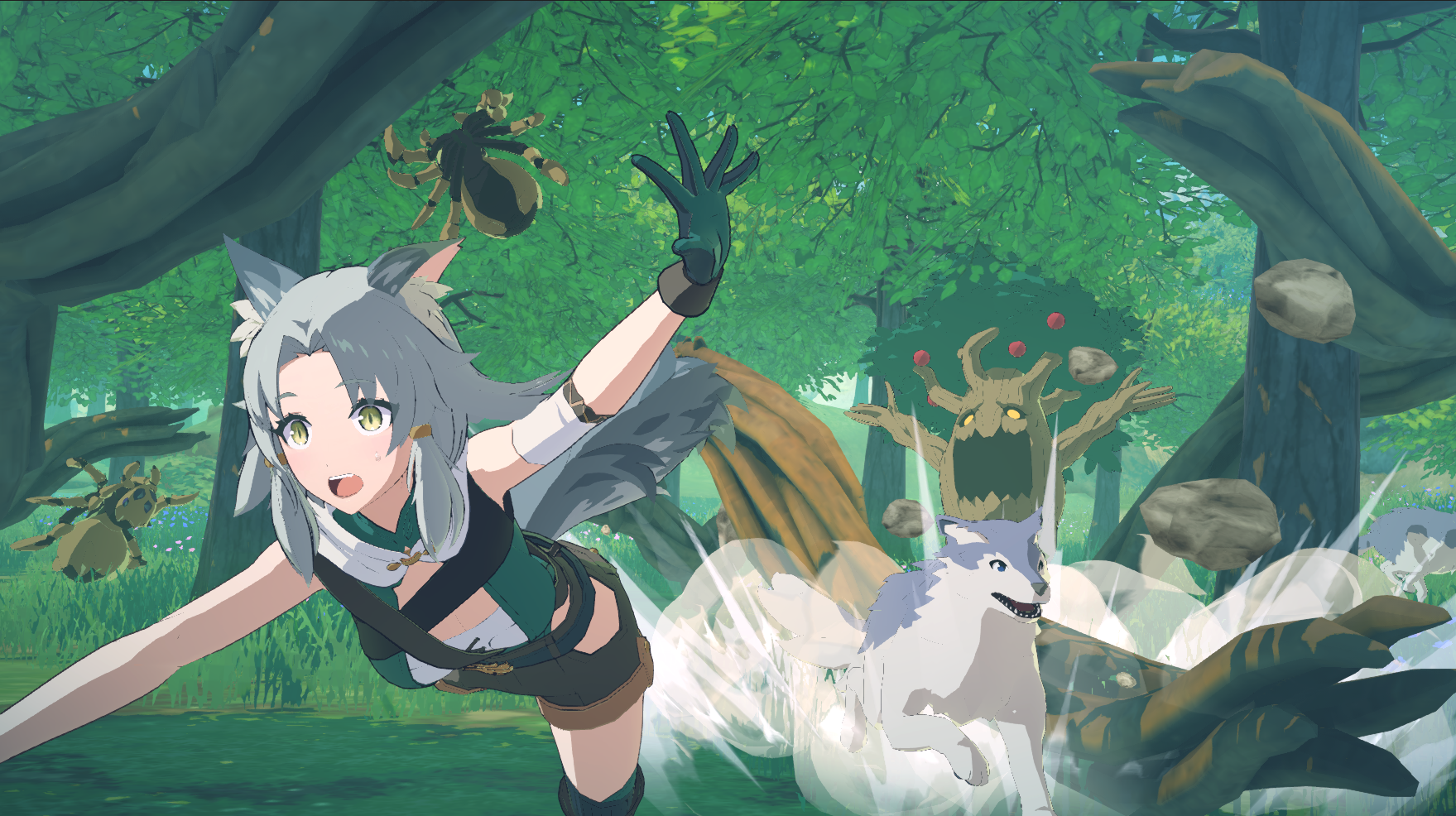 獣耳をピンと伸ばし、風の音や遠い小鳥のさえずりといった、森の音を拾い上げようとする。