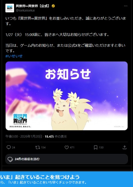 ポジティブな内容なら「大型アプデ決定!」「重大発表!」みたいに煽るはず。あえて内容を伏せて事務的に「大切なお知らせ」とするのは、サ終告知の定型文。